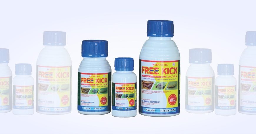 INSEKTISIDA FREE KICK 100/20 SC No: RI.01010120227646 Bahan Aktif: Lufenuron 100 g/l, emamectin benzoate 20 g/l Sifat: Kontak, lambung. Bentuk: Pekatan suspensi OPTK: Ulat grayak (Spodoptera frugiperda) jagung (1,5 ml/l), penggorok daun (Liriomyza chinensis) bawang merah (1,5 ml/l), ulat perusak daun (Plutella xylostella) kubis (1,5 ml/l)